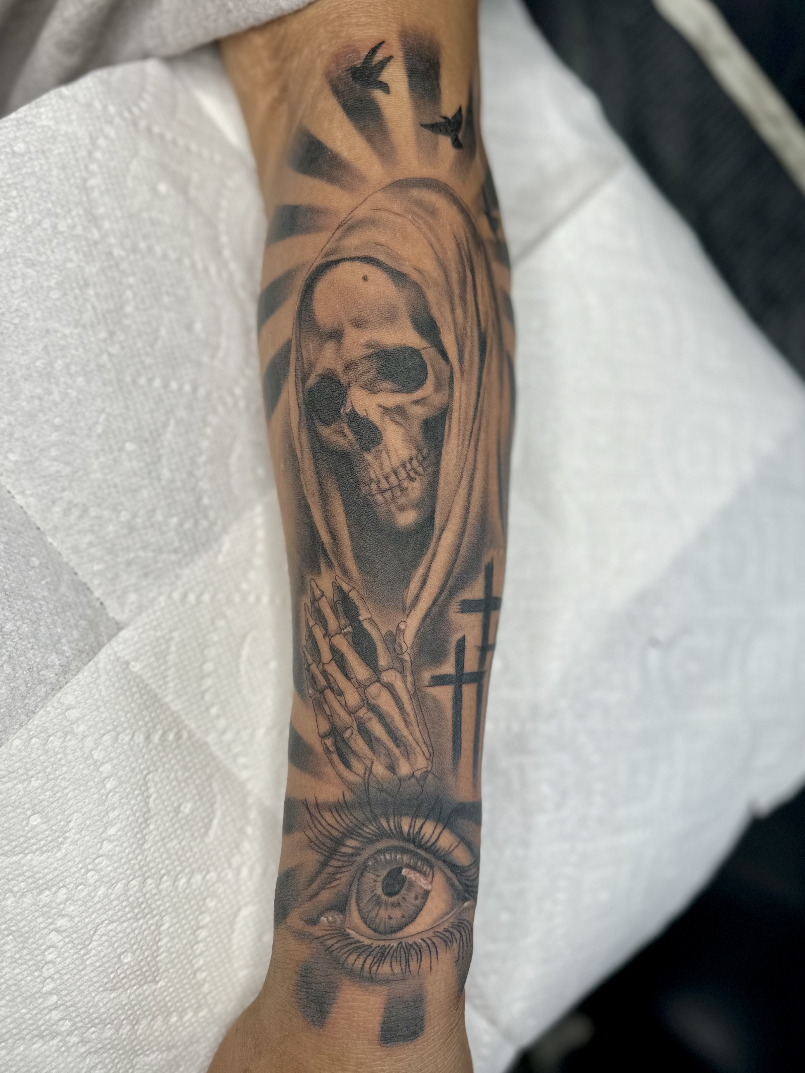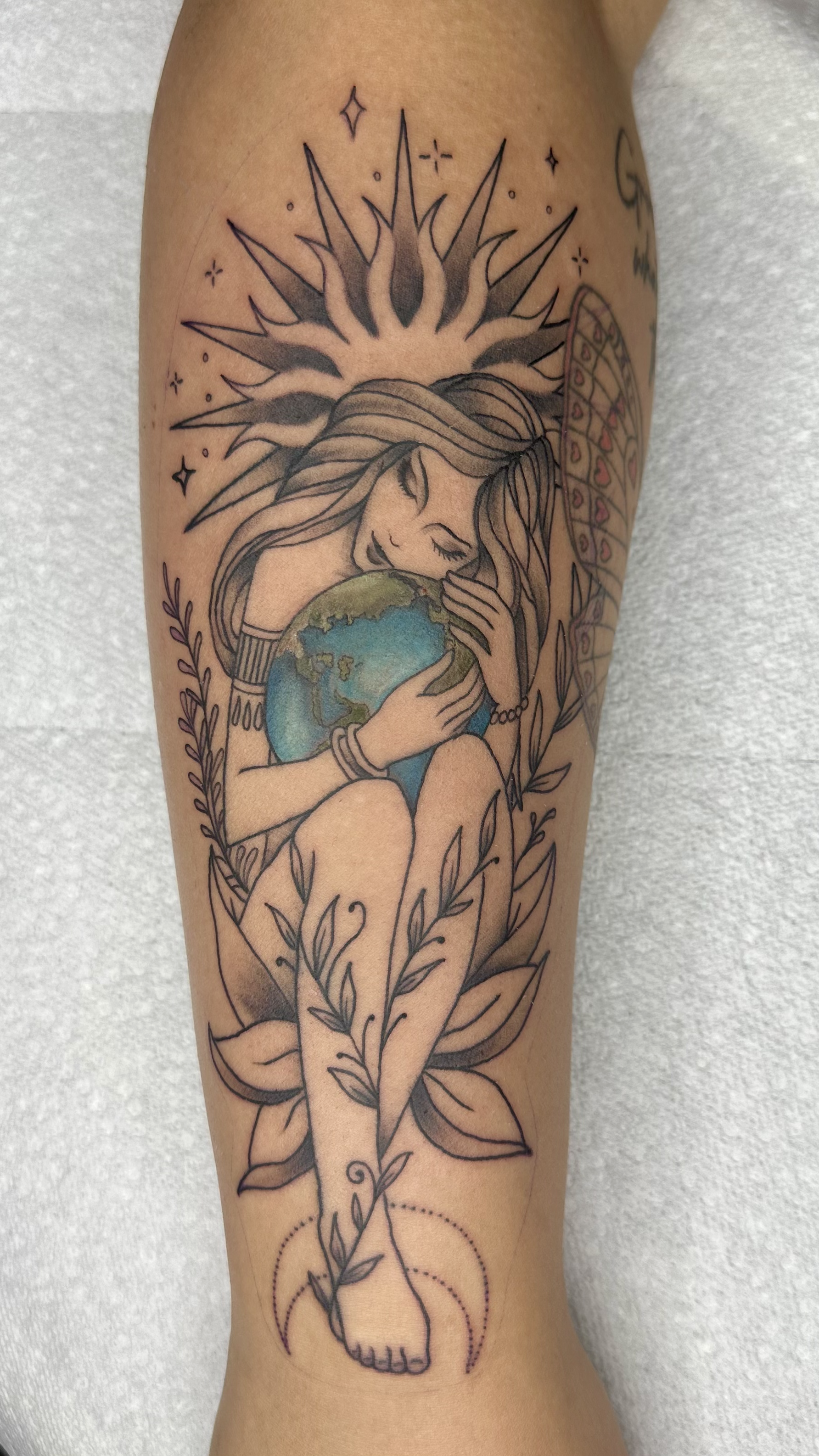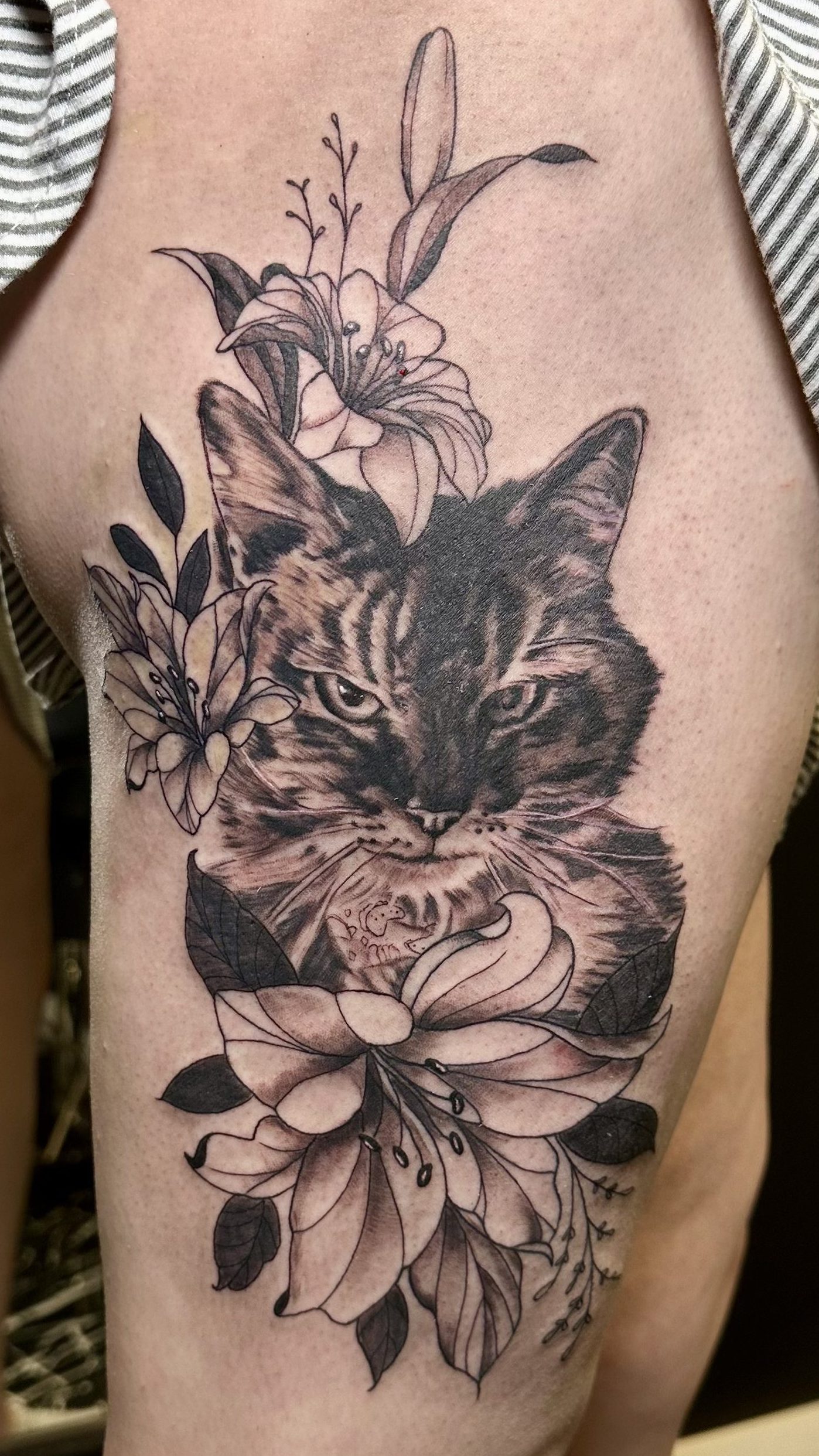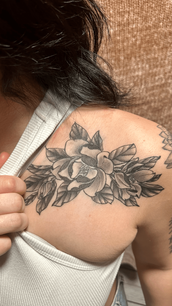 Her work blends fine detail with strong composition, giving each tattoo a unique personality and flow.